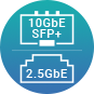 具备 2 个 10GbE SFP+/RJ45 复合端口,兼容 10GBASE-T 及 Multi-Gigabit NBASE-T 标准,可支持达五速 (10G / 5G / 2.5G / 1G / 100M) 网络,使用原有线材即可升级网络速度。