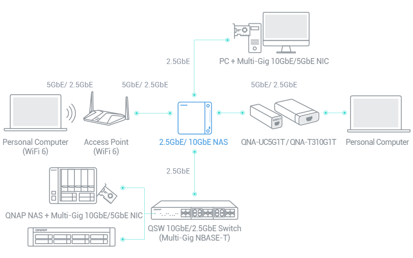 多个 10GbE 及 2.5GbE 网络端口,弹性配置网络基础架构