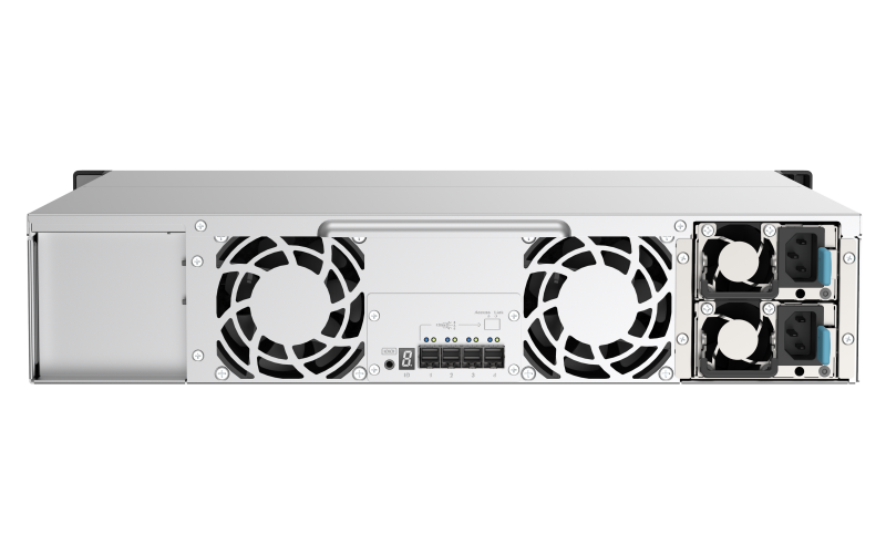 TL-R1220Sep-RP 搭载 28nm 低工耗 SAS35x28R SAS Expander 控制器,可安装 12 颗 12/ 6Gbps SAS/SATA HDD 或 SSD,其具备 4 个 12 Gb/s SAS 3.0 (x4 Lane) SFF-8644 SAS 宽端口 (Wide Port)。QNAP NAS 主机安装 PCIe SAS 扩充卡,可透过双埠接口带宽聚合与链状串接多台 TL-R1220Sep-RP,让所有串接 JBOD 皆达到高达 96Gbps 联机带宽。