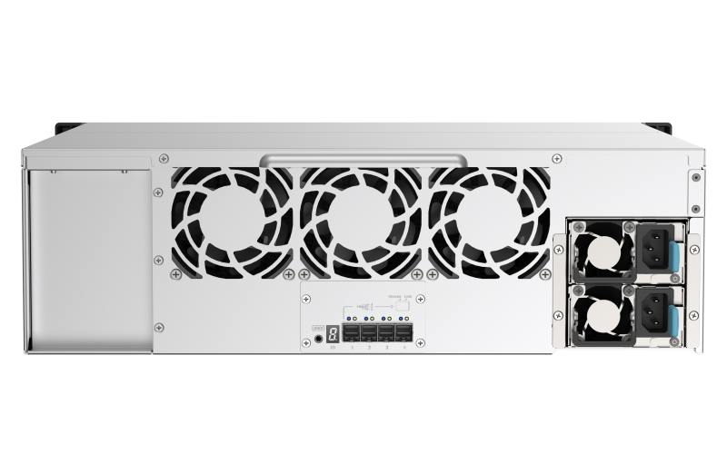 TL-R1620Sep-RP 搭载 28nm 低工耗 SAS35x36R SAS Expander 控制器,可安装 16 颗 12/ 6Gbps SAS/SATA HDD 或 SSD,其具备 4 个 12 Gb/s SAS 3.0 (x4 Lane) SFF-8644 SAS 宽端口 (Wide Port)。QNAP NAS 主机安装 PCIe SAS 扩充卡,可透过双埠接口带宽聚合与链状串接多台 TL-R1620Sep-RP,让所有串接 JBOD 皆达到高达 96Gbps 联机带宽。