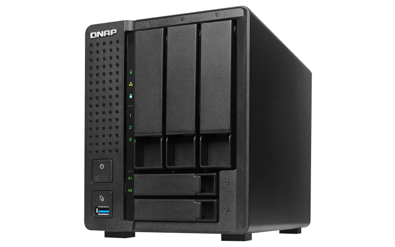 TS-551 支持 3 颗 3.5 英寸硬盘的存储空间以及 2 颗 2.5 英寸 SSD 专用埠,可建立较高安全的 RAID 5 保护,同时享有 SSD 快取而不占用 3.5 英寸硬盘的数据存储空间。3.5 英寸硬盘托盘采用免工具安装的卡扣式固定设计,安装硬盘更加方便。4K @30Hz HDMI 输出、Qtier™ 自动分层存储、进阶的虚拟化功能与多样化生产力应用程序,为 TS-551 增添多媒体影音和智能管理潜能,帮助您更有效率地处理日常作业与任务。