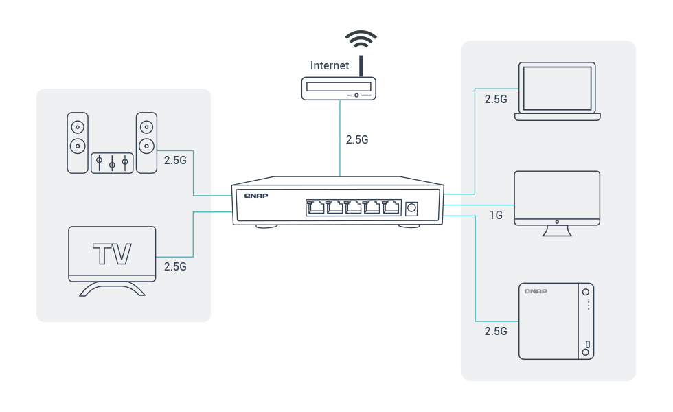搭配轻省 2.5GbE 交换机,即插即用打造高速内网