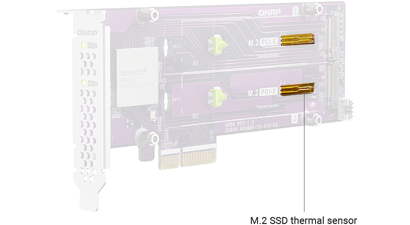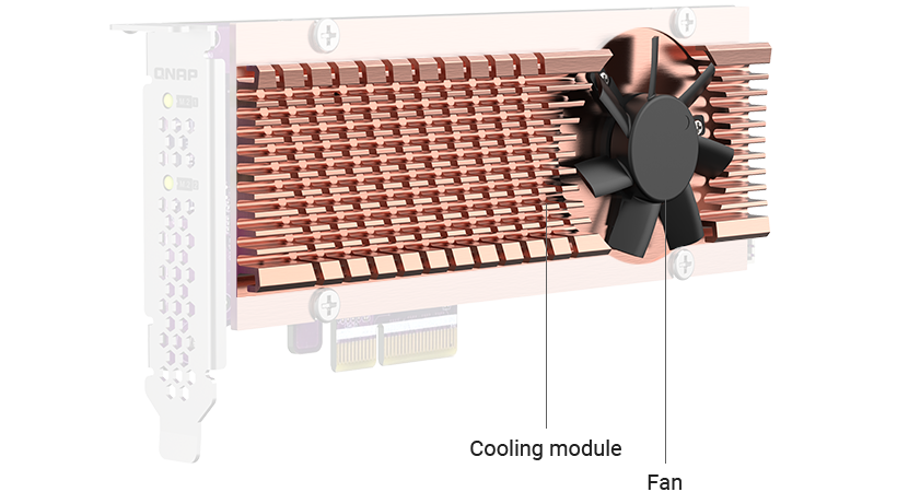 QM2-2P-244A 的高效设计可让您轻松安装 NVMe SSD,且透过安静的散热模块能同时发挥其最大效能。