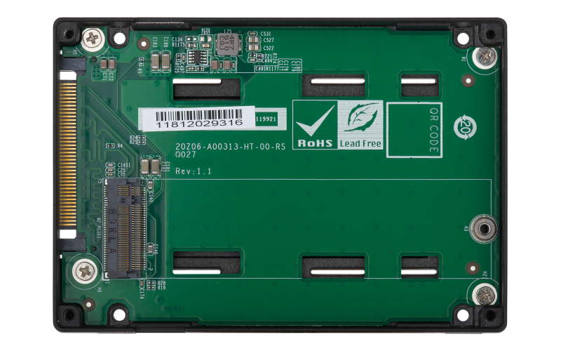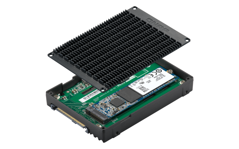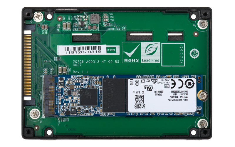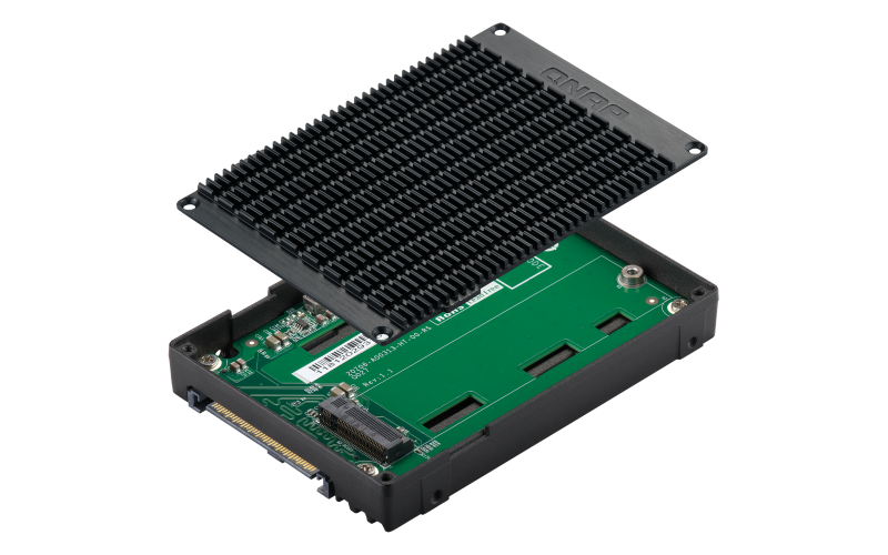 您可依需求在 NAS 上安装一个或多个 QDA-UMP,配置 M.2 SSD 于 U.2 SSD 硬盘槽中,以较经济的方式让系统充分利用 PCIe带宽,使密集存取应用效能优化;亦或启用 SSD 快取功能,推升系统整体 IOPS 效能。NAS 用户可透过存储与快照总管 (Storage & Snapshots Manager) 查看 QDA-UMP 中的磁盘健康状况,并配置 NAS 系统的存储空间使用方式。