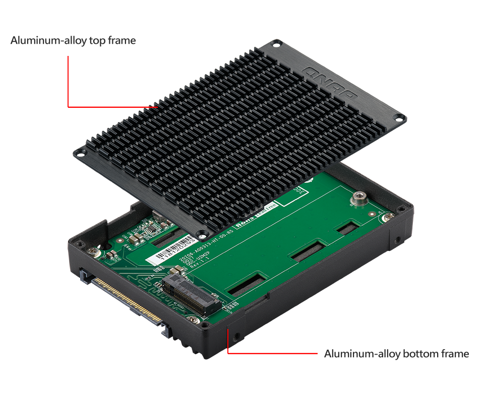 铝合金机身材质更加轻量化,较使用廉价铝板或 SECC 镀锌铜板的产品提供M.2 SSD 散热效果,同时附赠适用单面与双面 M.2 SSD 的散热垫。