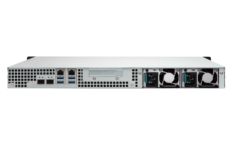 支持 10GbE 传输速度、SMB 入门级机架式 NAS,配备两个 SFP+ 埠、一个 PCIe 2.0 ×2 插槽和备援电源供应器
