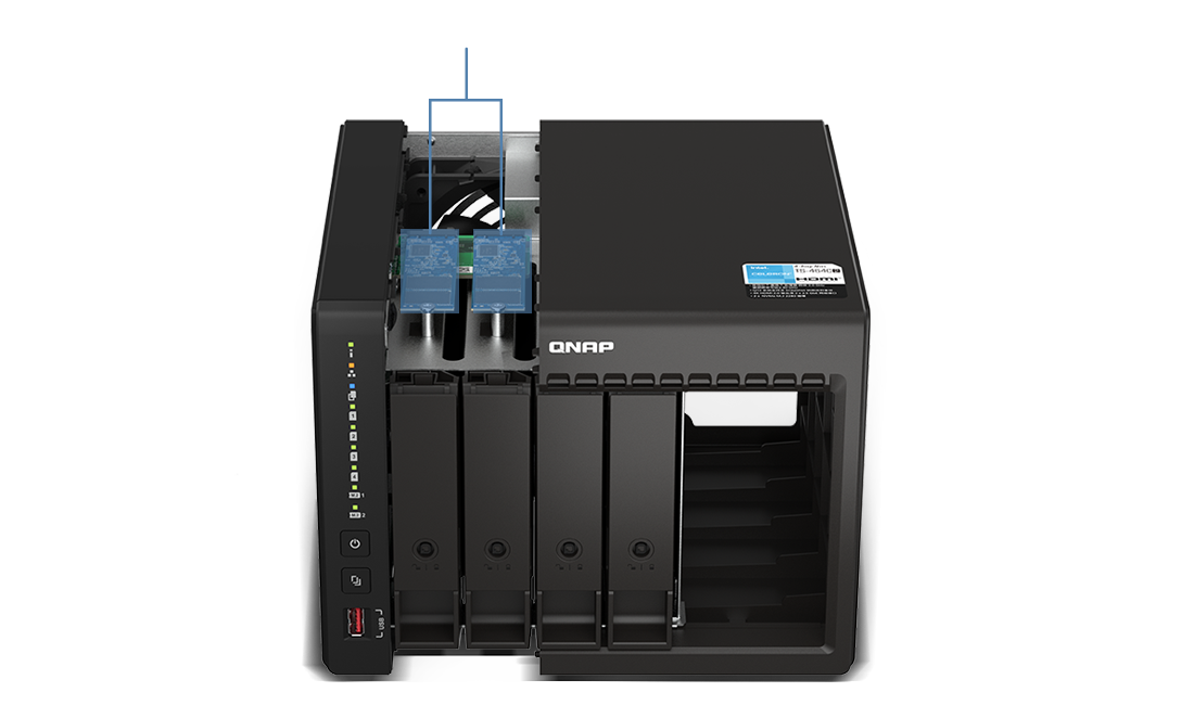 如果传输的文件较大时,可将 2 个 M.2 SSD 组成高速存储池,搭配 Qtier 自动分层存储,冷数据自动保存于 HDD,热数据自动存放于 SSD,实现更具效率化的平衡体验。