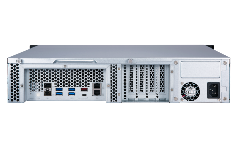 TS-877XU 搭载强悍 AMD Ryzen™ 处理器,携带高达 6 核心与 12 线程的性能优势,Turbo Core 可达 3.9 GHz 的高频率、高运算力将大幅推升 NAS 内建虚拟机性能,流畅体验,锐不可挡!配备 4 个 PCIe 扩展槽,可依需求弹性配置,搭配 QTS 管理,发挥应用潜能,双备援电源设计更能确保系统稳定运行。