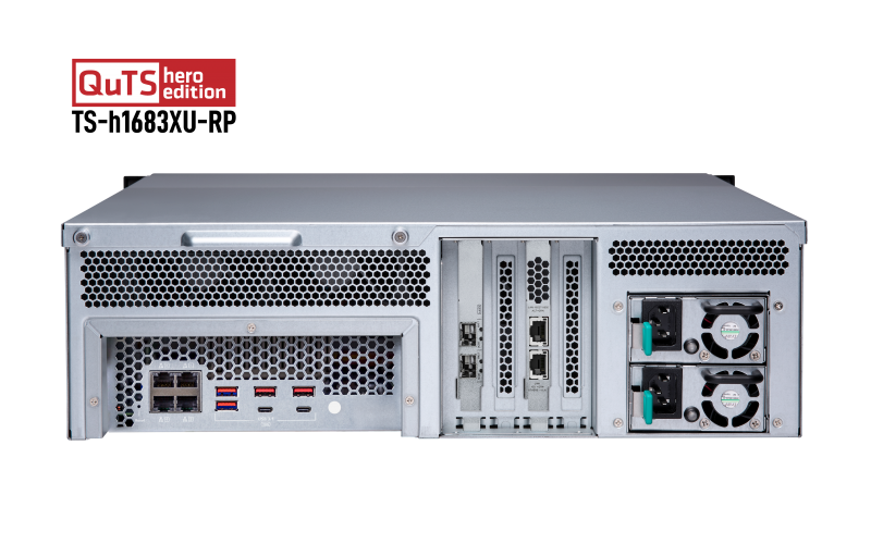 QuTS hero 专用机 TS-h1683XU-RP 搭载 Intel® Xeon® E 处理器以及 DDR4 ECC (Error Correcting Code) 错误修正内存 (最高可达 128 GB),展现服务器等级的强劲性能,同时兼顾系统稳定性。TS-h1683XU-RP 更搭载全新打造的 QuTS hero 操作系统,采用结合逻辑磁盘管理功能的 ZFS 文件系统,支持近乎无限的快照 (Snapshot)、实时快照同步 ( Real-time SnapSync)、区块层级数据重复删除和实时数据压缩等进阶功能。无论是文件服务器、虚拟服务器、桌面虚拟化、影音编辑协作、以及高速有效文件备份、虚拟机备份及异地备援等企业需求,TS-h1683XU-RP 皆能很好胜任,满足企业环境对于效率的追求。
