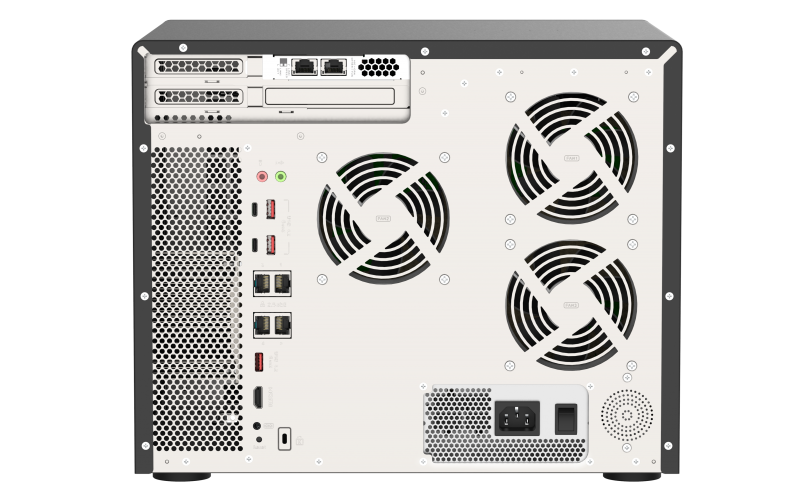 大容量 TVS-h1688X 搭载强悍 Intel® Xeon® W 处理器,可同时安装 2 张 QNAP QXP-T32P Thunderbolt™ 3 PCIe 扩充卡 (选购),享有高达 4 个 Thunderbolt™ 3 高速传输端口所带来的极速影音编辑工作流,打造 Mac® 与 Windows® 效能多媒体协作环境。TVS-h1688X 亦内建多端口 10GbE 与 2.5GbE 传输,支持 Port Trunking 与故障转移,为企业应用带来大带宽传输的优势。奠基于 ZFS 的 QuTS hero 操作系统重视数据完整性,支持区块层级实时重复数据删除和压缩、近乎无限的快照 (Snapshot)、实时快照同步 (Real-time SnapSync)、和读写兼备的多层快取等进阶功能。不仅影音编辑协作,作为文件服务器、虚拟服务器、以及文件备份及异地备援等应用,TVS-h1688X 皆能完美胜任,满足企业重视高效率和稳定服务的要求。