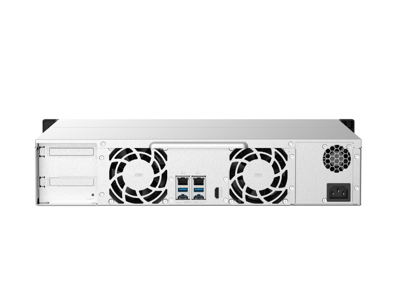 PCIe Gen 3 x4USB 3.2 Gen 1 端口 2 USB 3.2 Gen 2 (10Gbps) 端口 2 x Type-C USB 3.2 Gen 2 10Gbps HDMI 输出 1,HDMI 2.0 (高至 3840 x 2160 @ 60Hz) 外形尺寸 2U 机架式 LED 指示灯 HDD 1-8、状态、网络、存储空间扩充端口状态 按钮 电源、系统重置 尺寸 (高 x 宽 x 深) 88.65 × 482.18 × 398.58 mm 工作温度 0 - 40 °C (32°F - 104°F) 存储温度 -20 - 70°C (-4°F - 158°F) 相对湿度 5-95% RH (不凝结),湿球:27˚C (80.6˚F) 电源供应器 250W PSU,100 - 240V 风扇 2 个 (80mm),12VDC 系统警示 蜂鸣器 Max. Number of Concurrent Connections (CIFS) - with Max. Memory 2000 注意:请仅使用 QNAP 内存模块,以保证系统性能和稳定性。对于有多个内存插槽的 NAS 设备,请使用规格相同的 QNAP 模块。